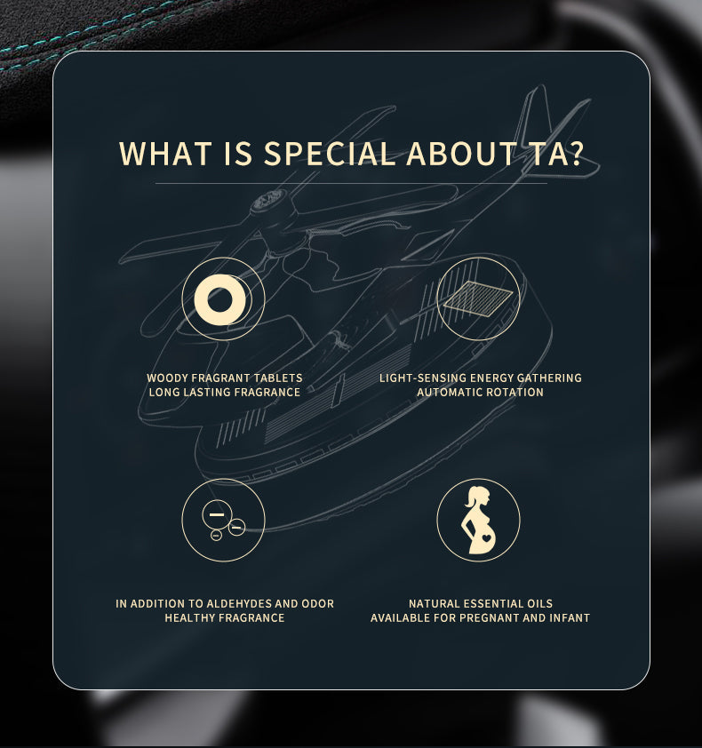 The air freshener, which has solar-powered design, can allow the propeller to run continuously to make the fragrance spread faster.